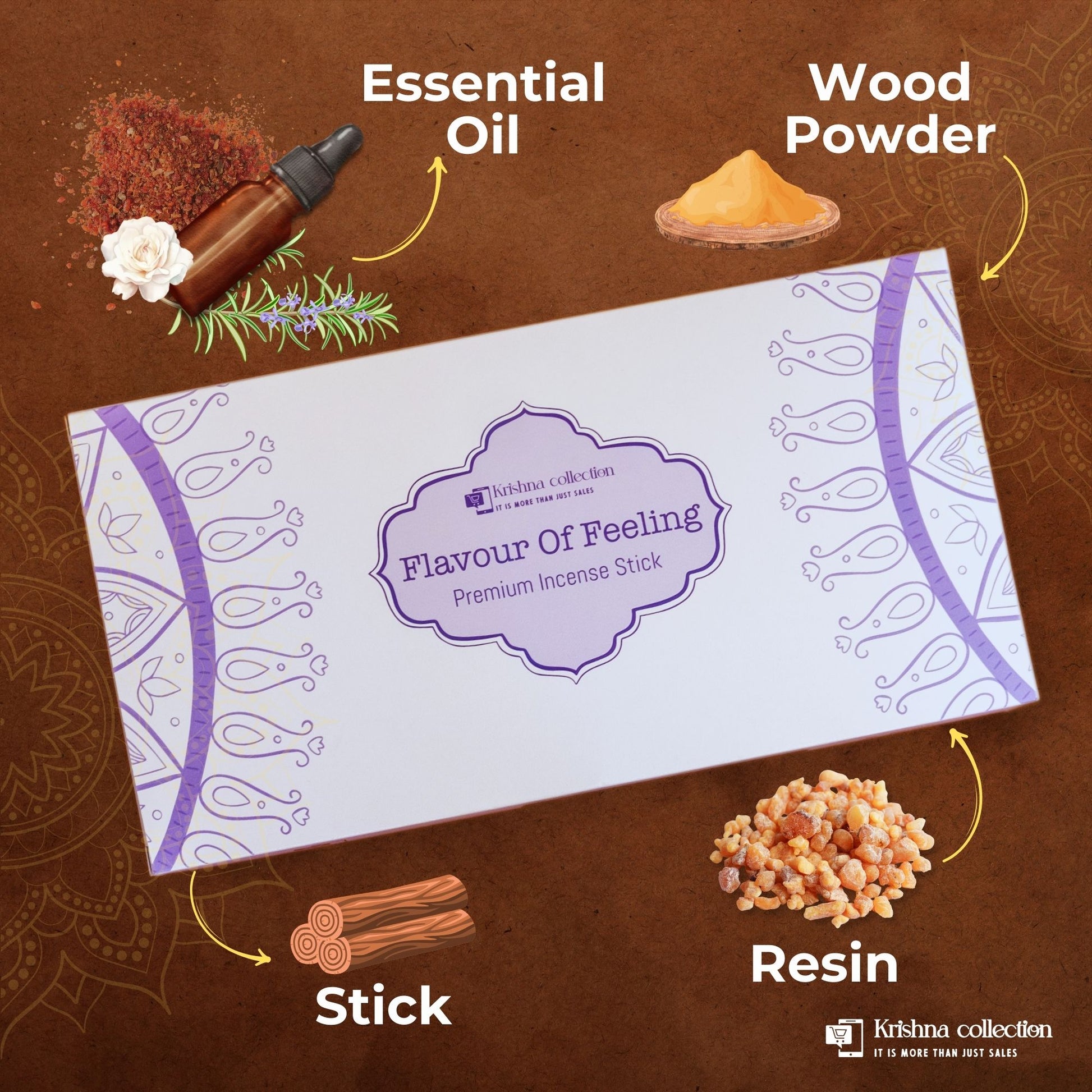 Krishna Collection – Flavour of Feeling Premium Incense Sticks – Odor Elimination, Long-Lasting Aroma for Spiritual Ambiance, Meditation & Relaxation